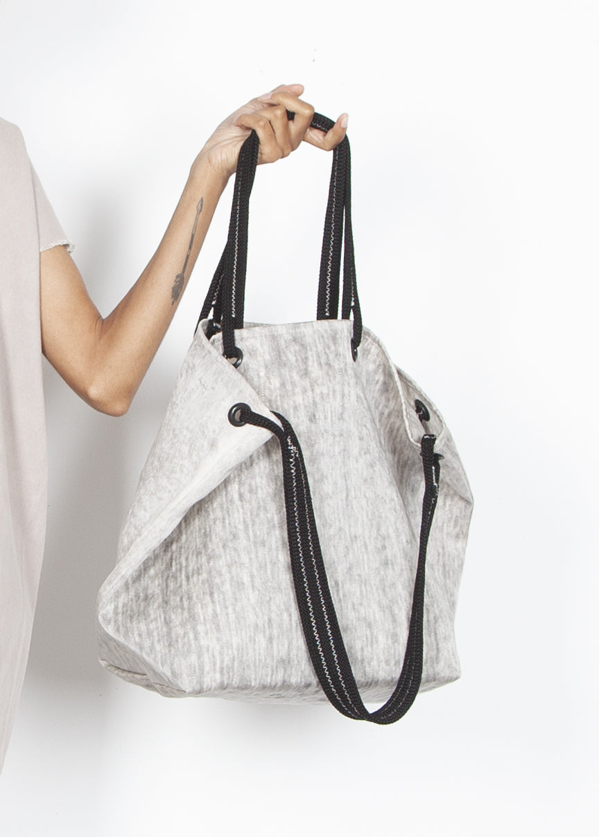 Upcycled climbing ropes are washed and hollowed out to make our distinctive flat handles. Our five step proprietary process completely transforms this material into something new and gorgeous.